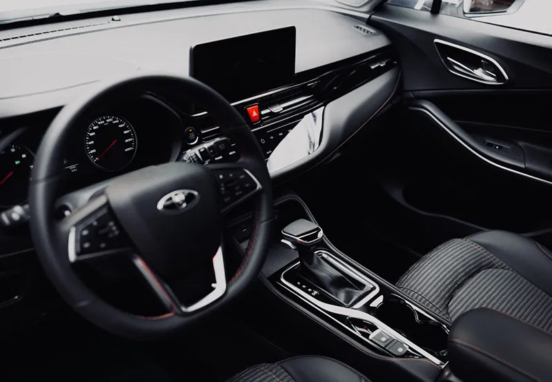 - Декоративная отделка: Элементы передней панели с отделкой кожей